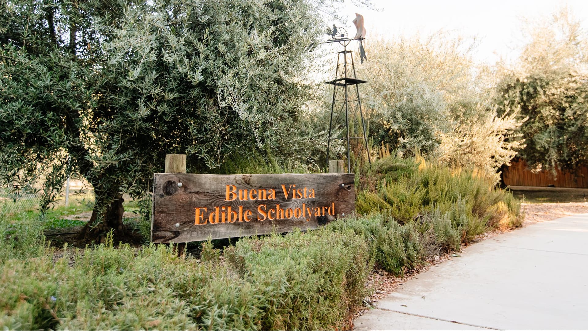 The Buena Vista Edible Schoolyard serves about 1,000 students from kindergarten to sixth grade. The curriculum follows a unique educational-nutritional model, with students learning to harvest and cook with award-winning extra virgin olive oil made from the school’s 370 Manzanilla olive trees.
