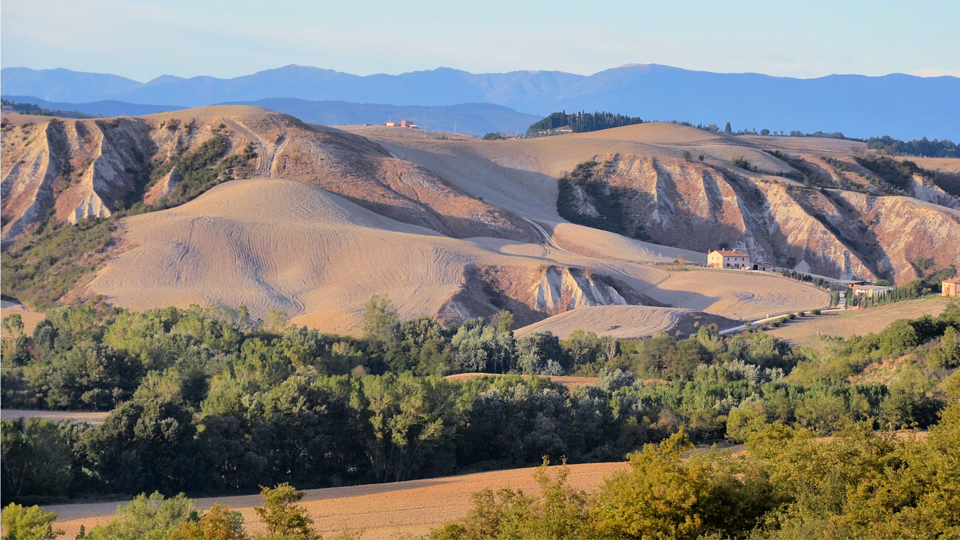 The area’s distinctive landscape was shaped by clay and marine sediments dating to the Pliocene era, between 2.5 and 4.5 million years ago. Over time, those ancient layers formed the undulating terrain that now defines this part of Tuscany.
