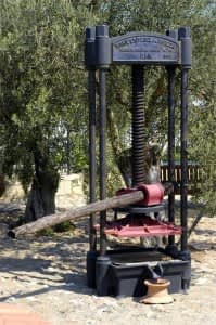 We have restored an abandoned antique soap factory building in Kucukkuyu county of Canakkale province, and re-designed it to serve as a traditional cold press olive oil factory. If you get a chance to visit it, you can be amazed at the very simple procedure of olive oil extraction by the traditional methods. On the large factory site, one can see large and small objects impressively displayed, such as huge granite stone mills for grinding the olives, antique olive presses belonging to different periods of history, numerous tools for pruning, olive picking as well as carrying baskets and earthenware jars for olive oil storage, amphoras from sunken ships of early trade throughout the Mediterranean, the huge oven and the bowl for soap making, knives and stamps for hand made pure olive oil soaps, olive oil lambs, and various labels of the local producers.