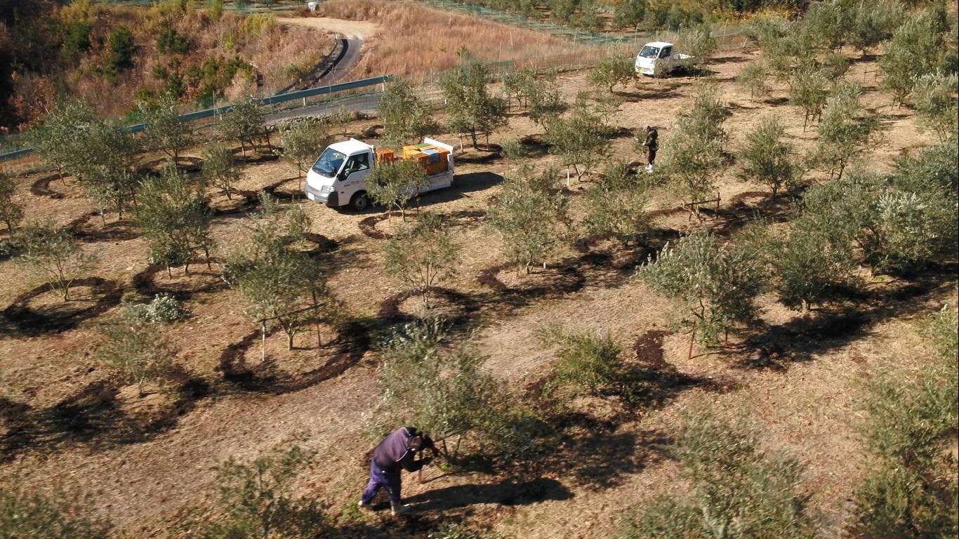 “One of the olive transformation process byproducts, the wastewater, is also composted with pruned olive branches and reused to enrich our farmland,” Hiraiwa said.