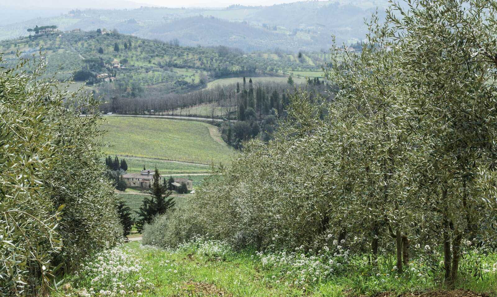 At Tenuta Castiglioni, 30 hectares of (74 acres) of olive groves, mainly composed of Frantoio plants, are interspersed with arable crops like wheat and corn, and vines for the production of Chianti.