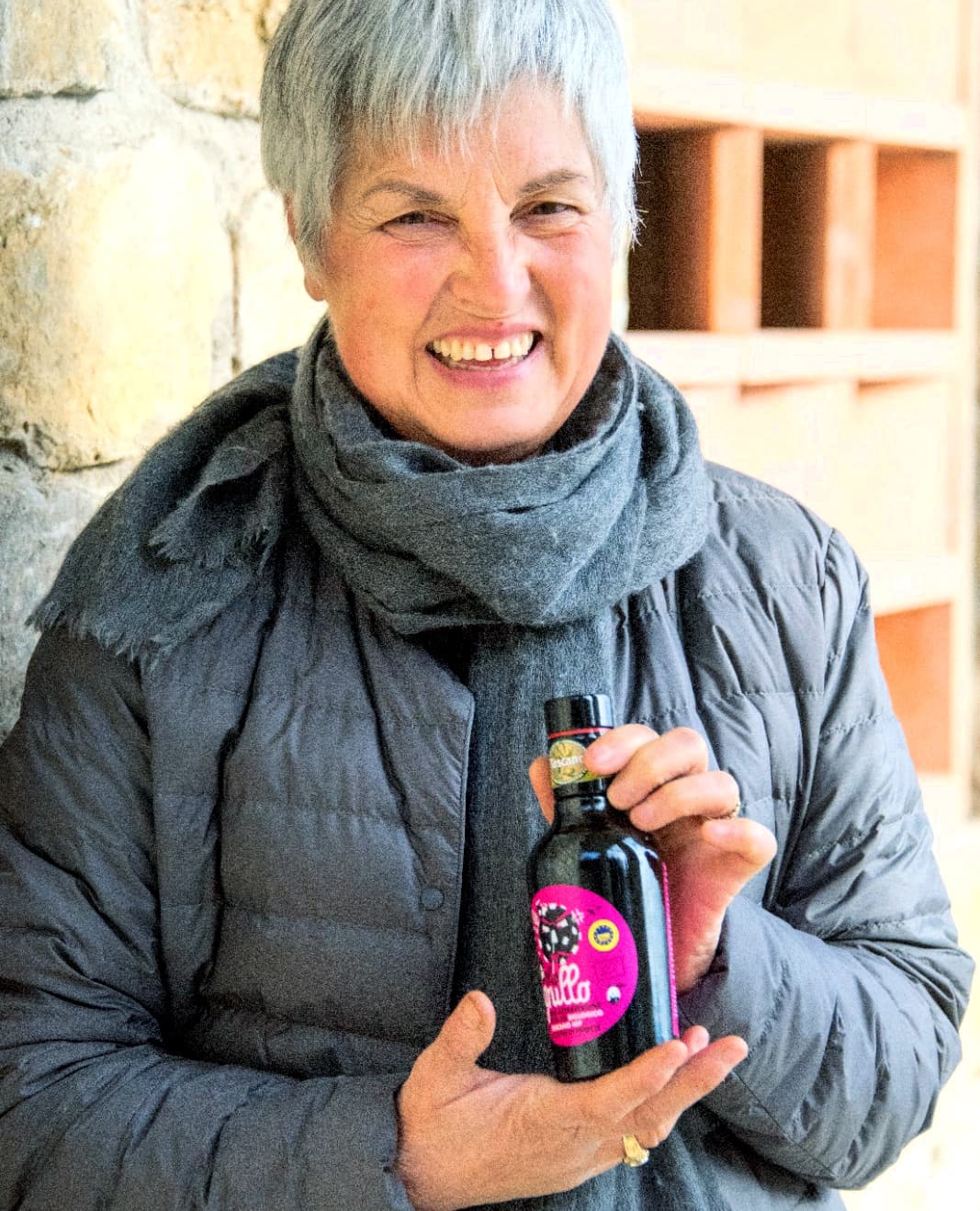 “We have chosen this name for our oil because we like to joke a bit,” Conti pointed out, referring to grullo, a regional word often used affectionately to describe a loopy person. “The label, which my son designed, includes a ‘funny story’ that changes every year.”