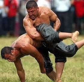 For once it doesn't matter if it's fruity, bitter or pungent. It just need to be slippery. Still, nothing but olive oil will do when wrestlers square off in this ancient ritual.
