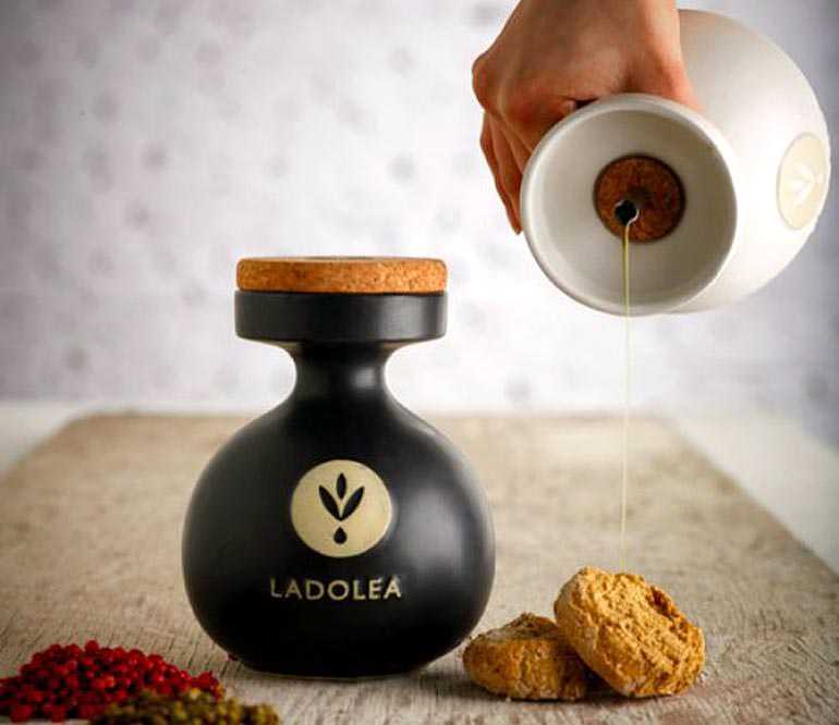 Kizis Studio’s Red Dot Award-win­ning design for Ladolea’s unfil­tered mono­va­ri­etal Megaritiki, Patrinia, and Koroneiki extra vir­gin olive oil comes in a reusable hand­made ceramic pot that pre­vents light pen­e­tra­tion, thus main­tain­ing its con­tents in its purest form, aroma and taste,” as the Greek Foundation web­site indi­cates. Ladolea’s Megaritiki is a 2015 NYIOOC award win­ner.