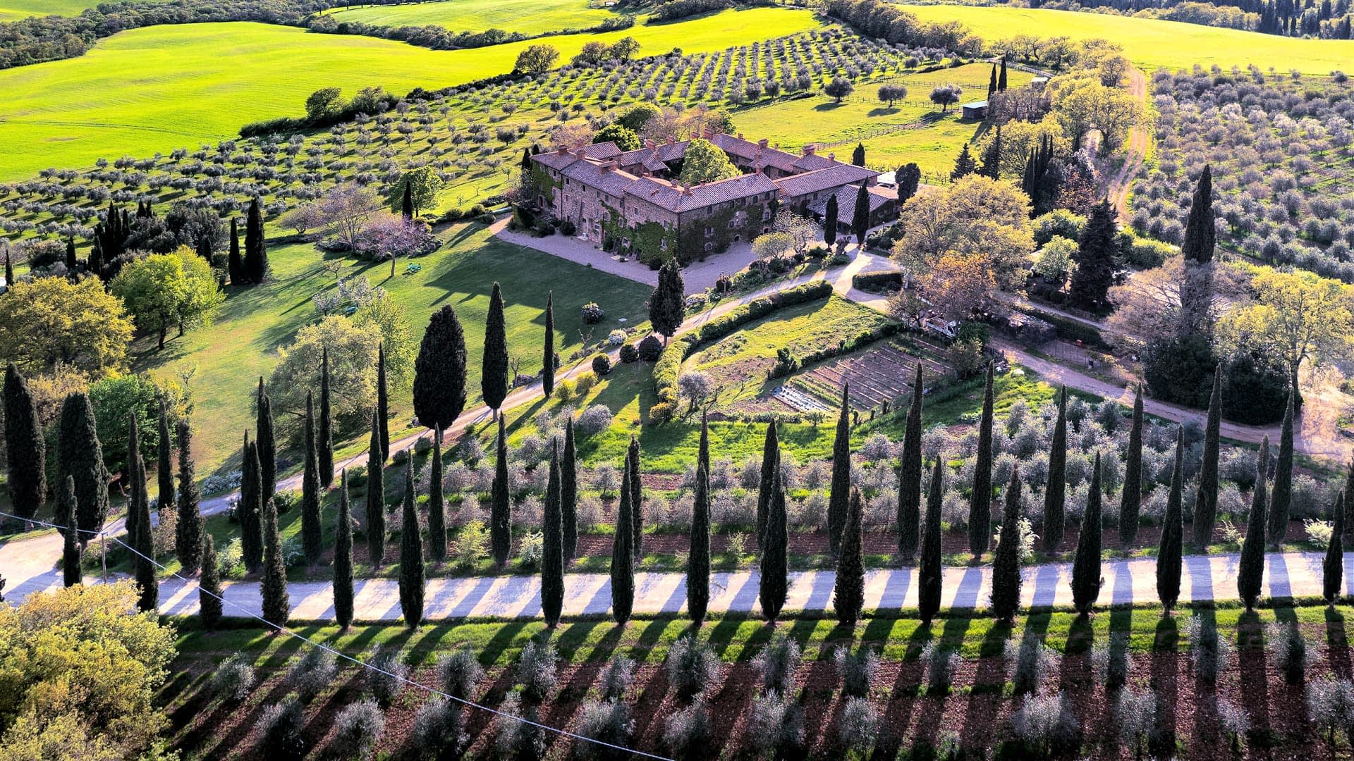 Over the past two decades, Origo has devoted herself to Chiarentana, managing a 550-hectare (1,360-acre) farm, including 10 hectares of olive groves with 2,800 trees surrounding the farmhouse.