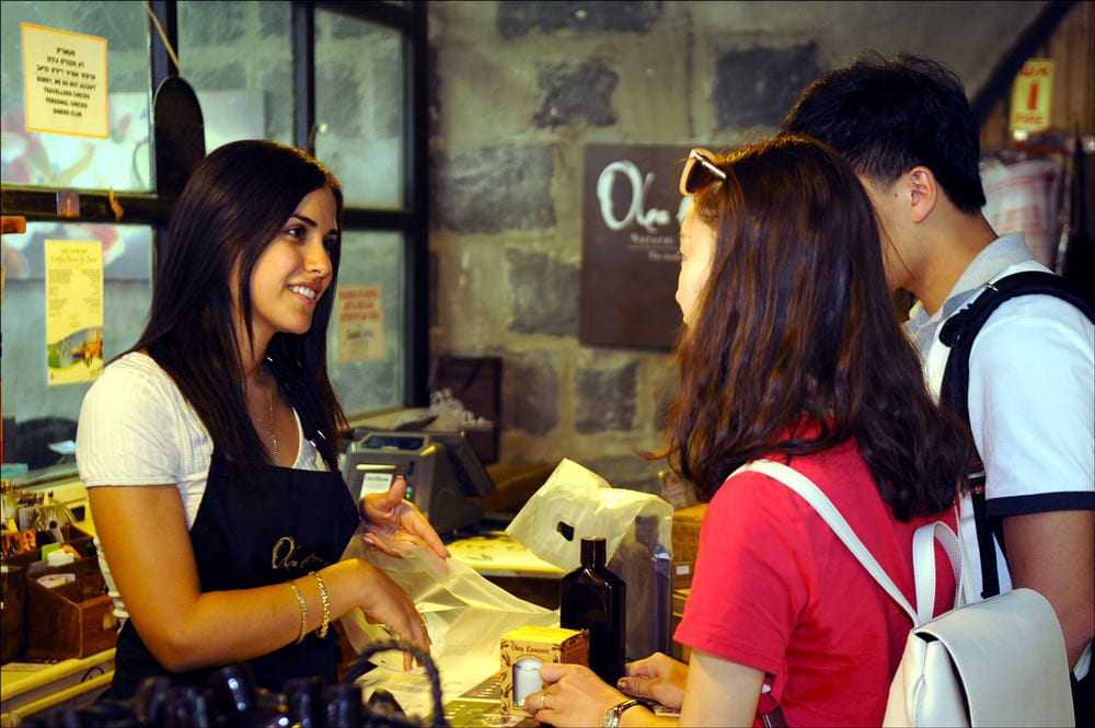 Besides this location, Olea Essence has three other outlets in the north: Ein Gev, Ginossar and Yardenit — all popular destinations for Jewish tourists as well as evangelical Christians. The shops get a combined 100,000 visitors a year, mainly Americans and Europeans who arrive by the busload, view a five-minute video, take a tour of the facilities, enjoy lunch and watch a demonstration of how to use the company’s olive oil-based cosmetics, all of which are on sale at the gift shop.