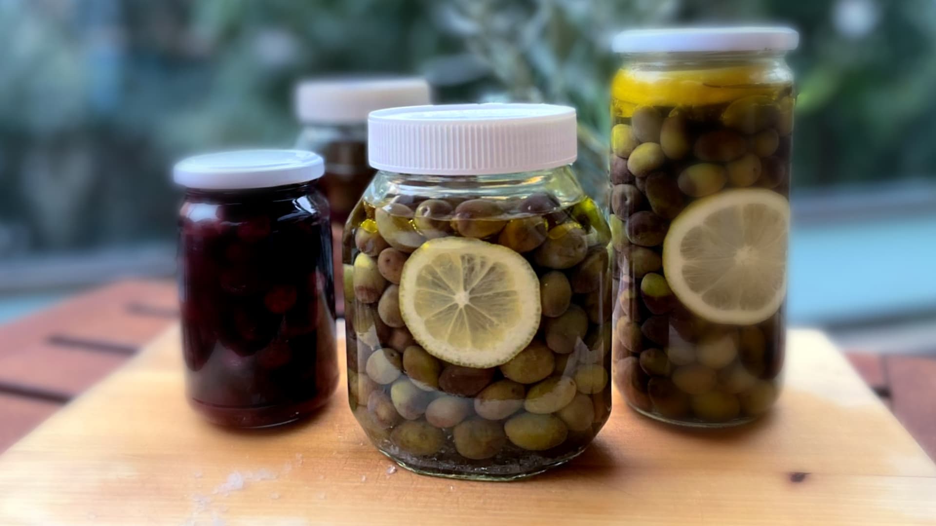 The olives are either crushed and soaked in water for a week to remove some of their natural bitterness or left whole in lightly salted brine for a month. Occasionally, the family adds mint or sumac for additional flavor.