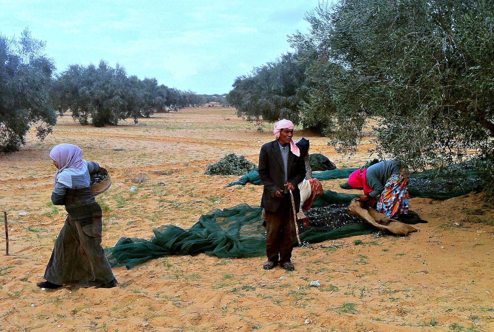 Similar scenes are found throughout Tunisia, where families spend months slowly picking olives from the nation’s millions of trees. They stop at mid-day to eat and make pots of tea on fires.